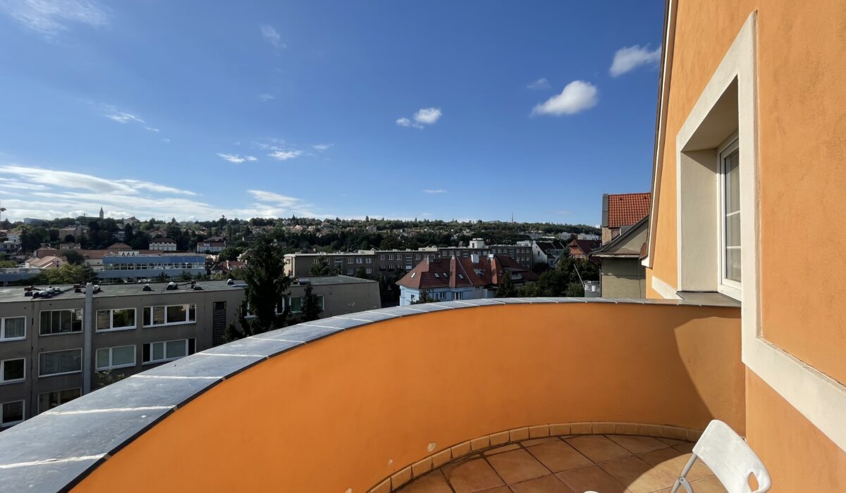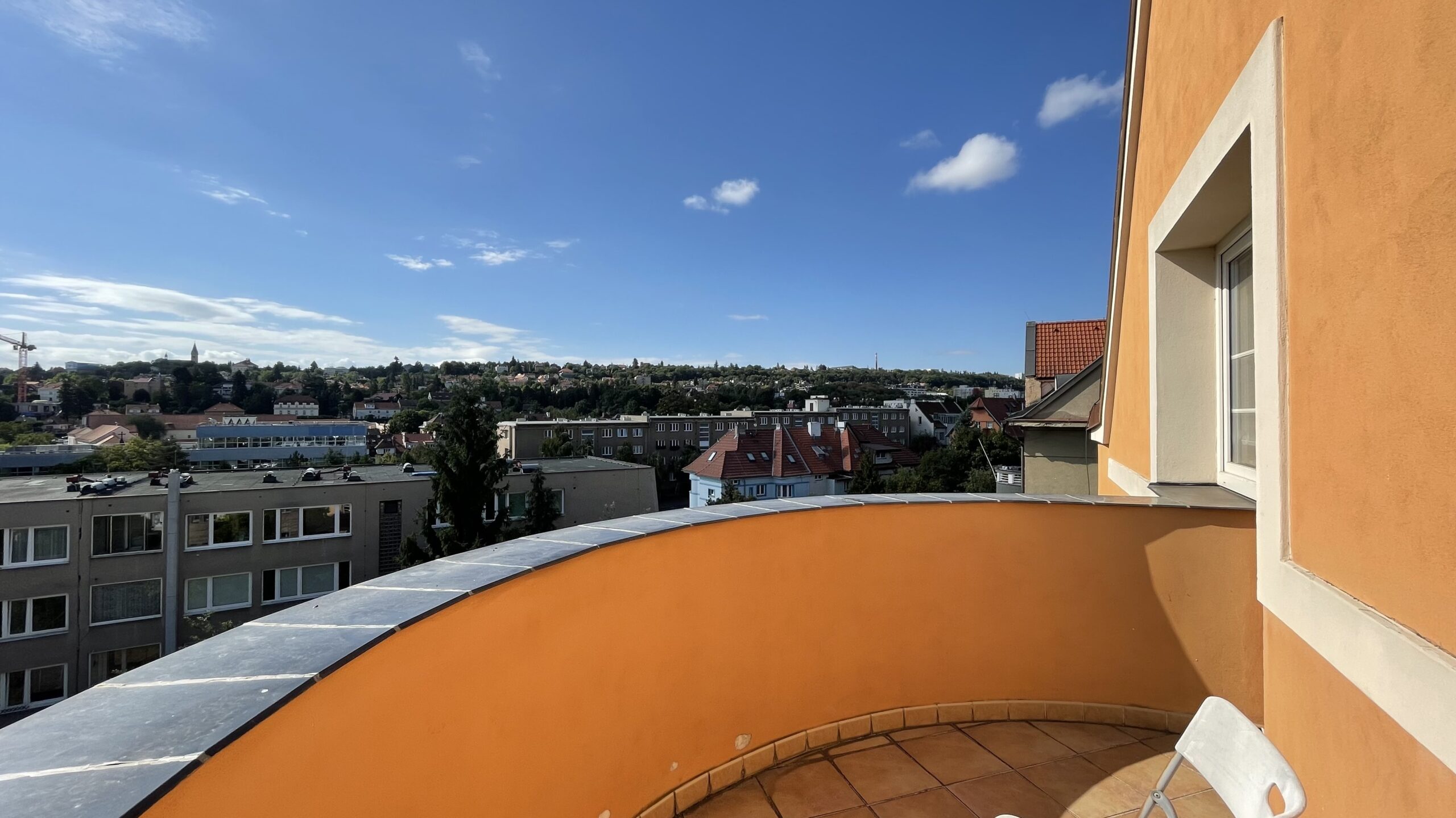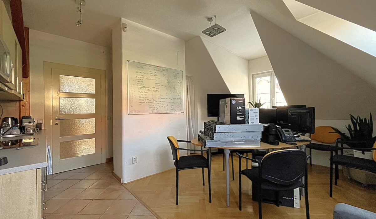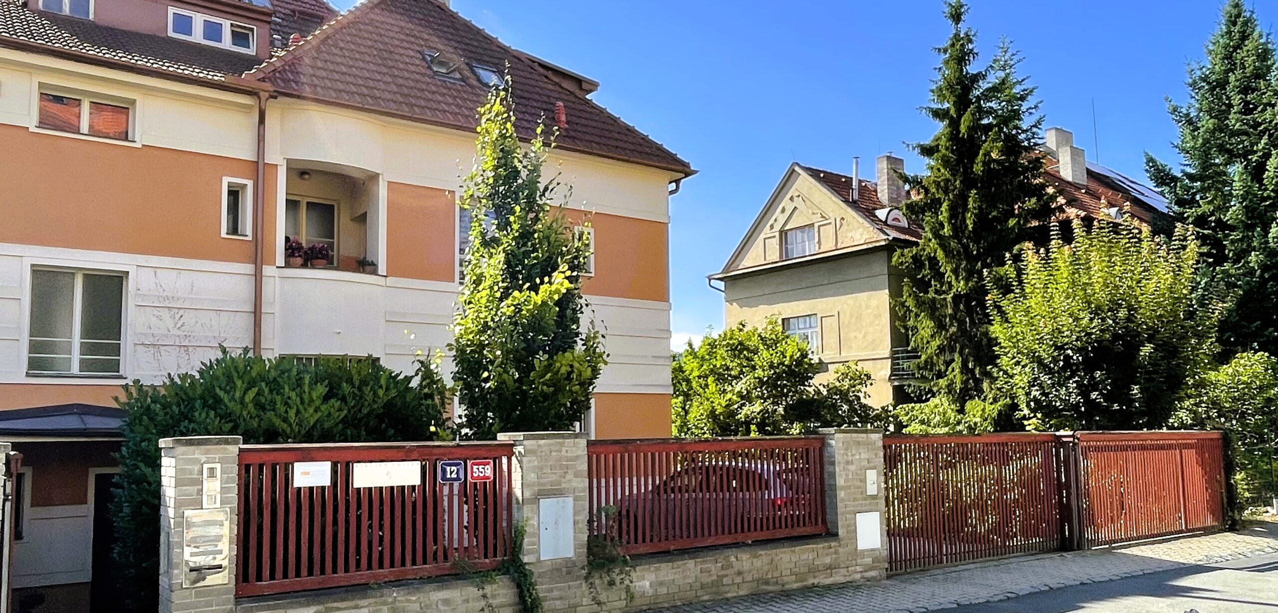 Jedná se o bytovou jednotku 3kk, která je nabízena výhradně jako kancelářský prostor sestávající ze 3 místností – 2 samostatných kanceláří a další místnosti s kuchyňským koutem, která je stávajícím nájemníkem užívána jako zasedací místnost. Jedna z kanceláří je průchozí se vstupem na balkon s pěkným výhledem do zahrady a dále směrem k ulici Evropská. Koupelna je s vanou a toaletou, k dispozici je pak ještě další samostatná toaleta. V chodbě je menší vestavná šatní skříň, velmi praktické jsou i 2 menší skladovací prostory/kumbály přístupné ze zasedací místnosti a další skladový prostor/sklep v suterénu domu.