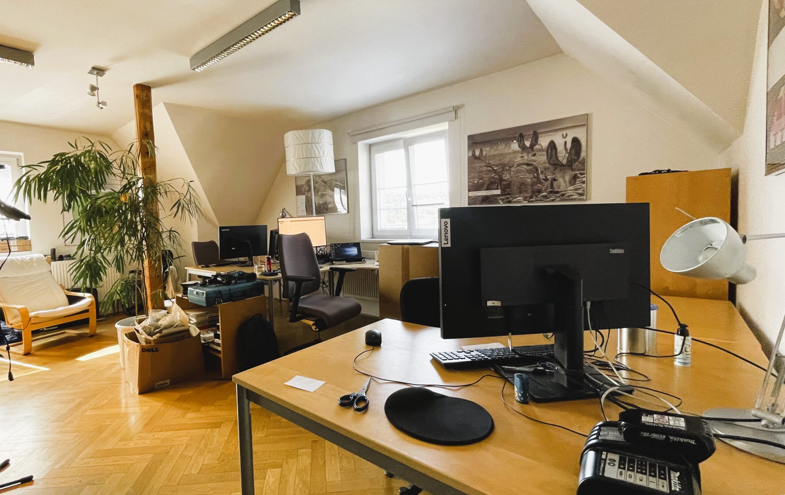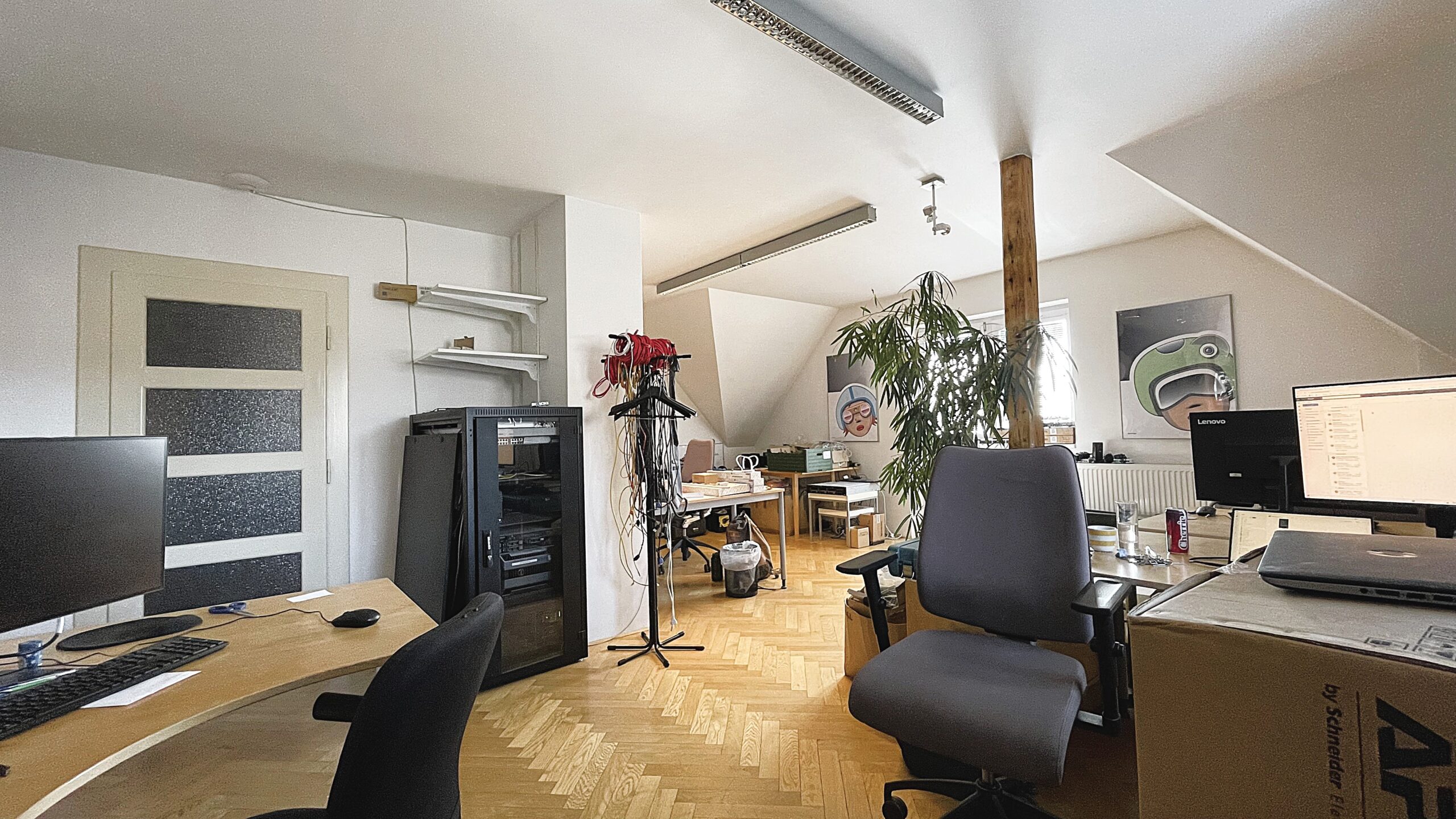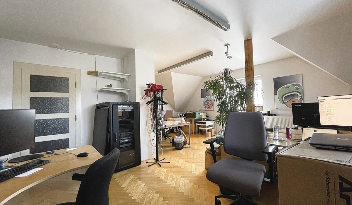 Prostory jsou ve velmi dobrém stavu, vertikální okna jsou plastová, opatřená žaluziemi, střešní okna pak dřevěná. Na podlahách kombinace dlažby a dubových parket. Vybavení kanceláří ve fotogalerii není součástí nájmu, po odchodu stávajících nájemníků budou prostory prázdné a nově vymalované.