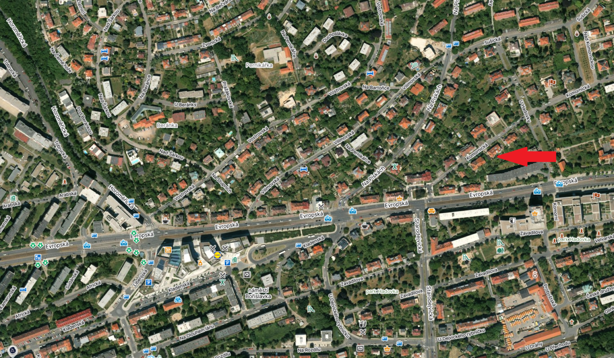 Parkování na pozemku vily není možné, zahrada též není k dispozici. Výborná dostupnost MHD, tramvajová zastávka Hadovka, stanice metra A Bořislavka vzdálena 600m od kanceláře, zde se též nachází Bořislavka Office & Shopping Centre.